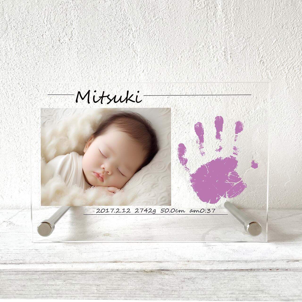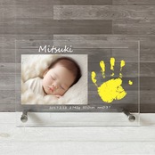 〈HYS01〉写真付!赤ちゃん手形【出産記念 命名書 新生児〜】アクリルフォトスタンド sikakuヨコ (手形6cm前後まで)