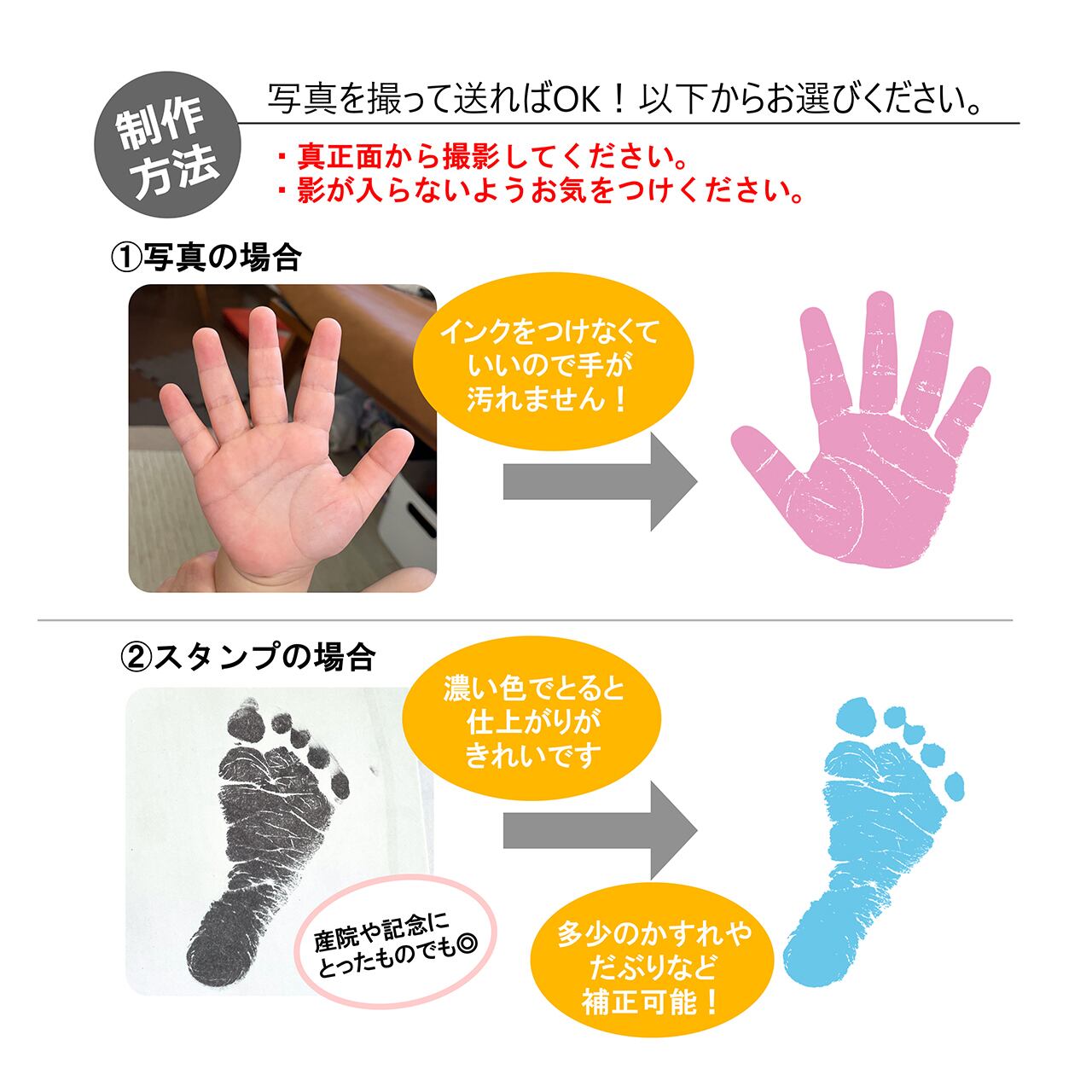 ※手形足形は右手足、左手足、右手と左足、左手と右足、お好きな組み合わせでOK!バランスを見て左右配置をさせていただきます。