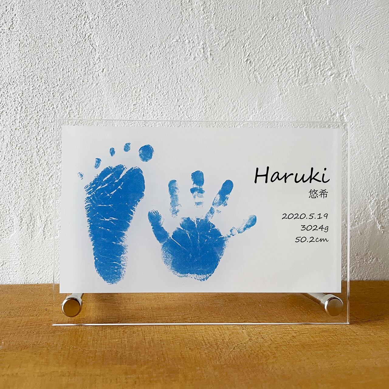 〈HY02W〉赤ちゃん手足形ヨコ(背景白)【出産記念 命名書 新生児〜】アクリルフォトスタンド ベビー(足形7cm前後まで)